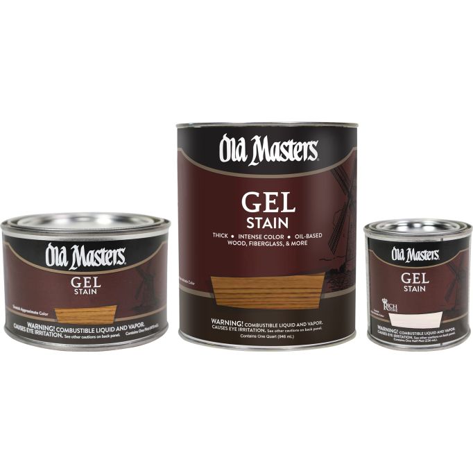 Old Masters Gel Stain delivers rich, even color on wood, fiberglass, metal, and composites. Thick formula ideal for vertical surfaces like doors with exterior finish protection.